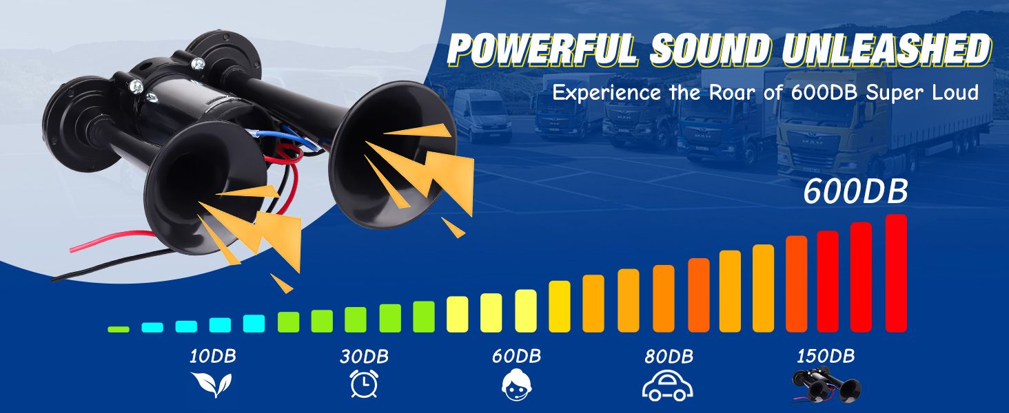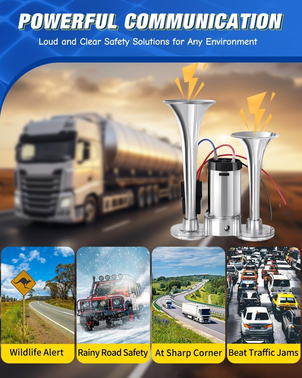 - 【600DB Super Loud】Animgrth dual -tube air horn for its excellent 600DB ultrasound effect. This speaker has a truck and train -level compressor and larger coil, which can produce stronger pressure, which brings louder and clearer sounds to ensure that your alarm sound is heard and provides you with higher safety.